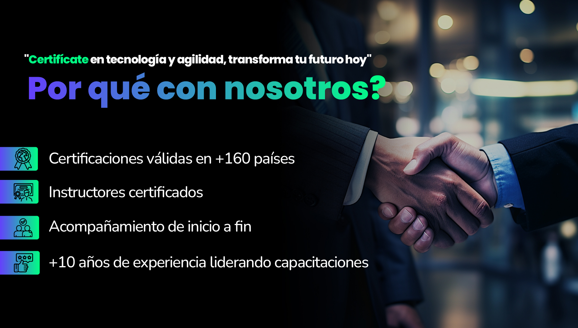Todos nuestros programas están respaldados por entes certificadores reconocidos internacionalmente, lo que garantiza una formación rigurosa, actualizada y aplicable en contextos reales de trabajo. Gracias a estas certificaciones, los profesionales y organizaciones que se forman con Entre Ágiles adquieren competencias estratégicas, validadas bajo estándares globales de calidad.